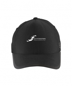 Fabric is 100% polyester pinhole woven mesh with structured profile, mid features, black reflective O heat transfer on side panel black reflective welding on bill, and OGIO seam taping. Low-profile hook and loop with black reflective stacked O heat transfers.