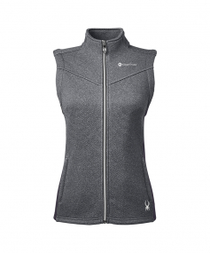 Pillow tech fabric: quilted, lightweight with warmth-retaining fill; Encore double-knit fleece with insulated woven for warmth and comfort; Iconic high definition rubberized Spyder bug logo at back neck.
